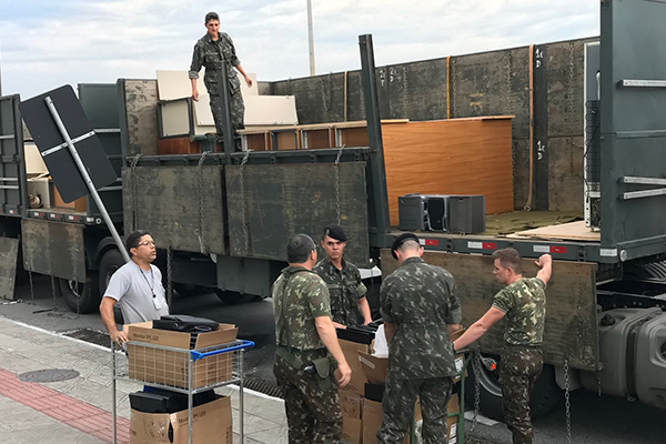 "A doação de bens permanentes de mobiliário e informática vai ajudar o 5º Batalhão de Engenharia de Combate Blindado a desempenhar o seu papel em todo o estado", salientou o tenente Alberto, um dos militares envolvidos na operação.