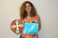 A coordenadora do Programa Bem Viver, Cynthia Orengo, com o troféu e o certificado do prêmio.