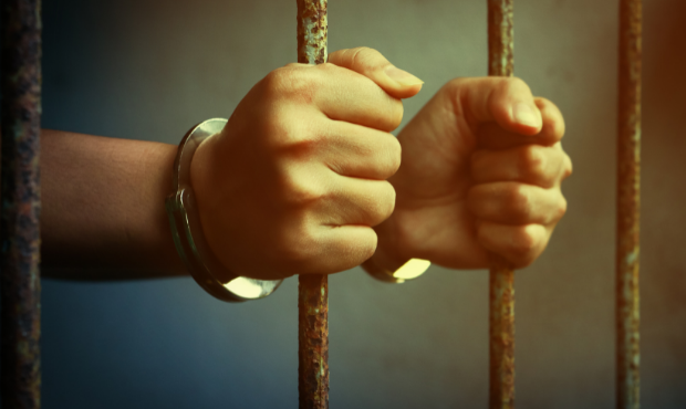Foto: Canva #ParaTodosVerem: mãos algemadas atrás de grades.