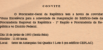Imagem: Acervo/PRR1 #ParaTodosVerem: imagem do convite para a solenidade de inauguração da nova sede.