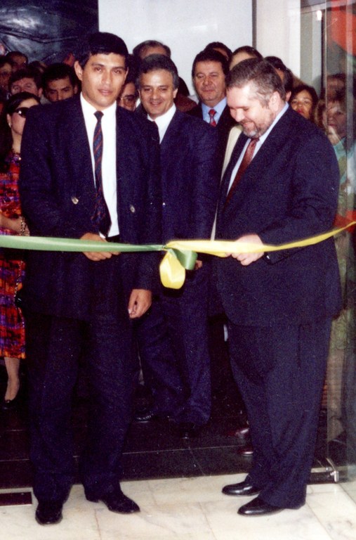 Imagem: Acervo/PRR1 #ParaTodosVerem: o então procurador-chefe da PR/DF, Ítalo Mendes, e o então procurador-chefe da PRR1, Roberto Gurgel, cortam a faixa inaugural