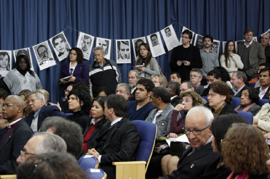 Ato de Entrega do Acervo -- O evento foi concluído com o ato de entrega do acervo do Brasil: Nunca Mais ao procurador-geral da República. Essa parte do trabalho foi coordenada pelo subprocurador-geral da República Aurélio Virgílio Veiga Rio e contou com a presença do então procurador-geral da República Roberto Monteiro Gurgel Santos. O PGR fez um pronunciamento lembrando as missões delegadas ao Ministério Público pela Constituição de 1988, entre as quais a defesa do Patrimônio Cultural e dos Direitos Humanos. O Brasil: Nunca Mais constituiu e constitui uma iniciativa absolutamente pioneira, o primeiro e mais consistente olhar sobre o período ditatorial que vivemos. É um privilégio para o Ministério Público Federal poder participar dos esforços e levar adiante esse projeto. Agora, para tornar amplo e irrestrito o acesso a todo material relacionado a esse grande marco na luta pelos direitos humanos no Brasil, afirmou. O PGR concluiu sua fala dizendo que precisamos, sob todas as formas, afirmar e concretizar o direito fundamental à verdade histórica.